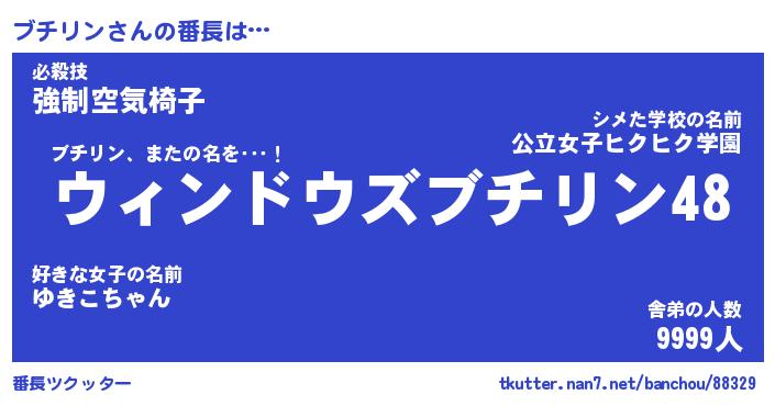 | ヒーロー風カッコイイあだ名 | 『スーパーブチリン』『暗黒騎士ブチ』 |