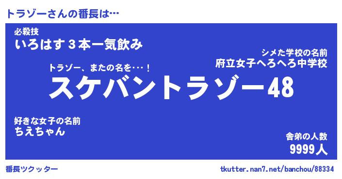 | 胡散臭い通販商品みたいなあだ名 | 『モテモテ間違いなし水晶球…その名も「トラゾー」』 |