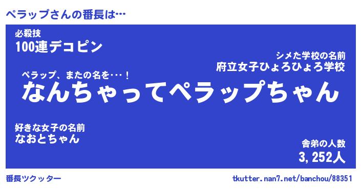 | 意味不明あだ名 | 『ペロリンペラップ』『永久保存ペラップ』 |