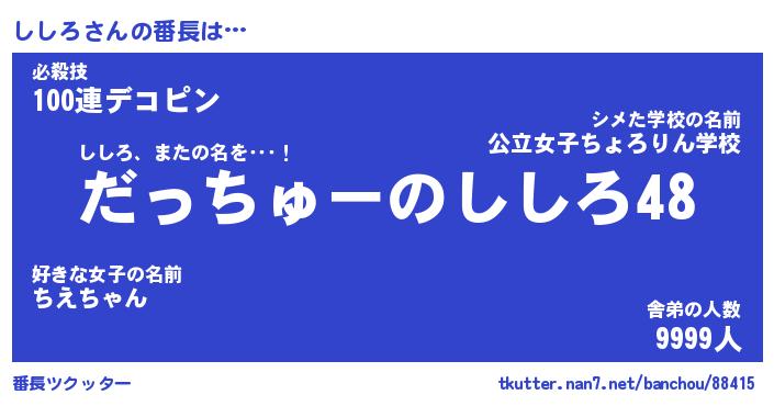 | ヒーロー風カッコイイあだ名 | 『スーパーシシロ』『ウルトラししろマン』 |