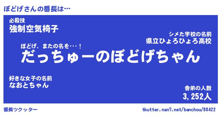 | ポケモン風あだ名 | 『ボドチュウ』『ボドゲダネ』 |