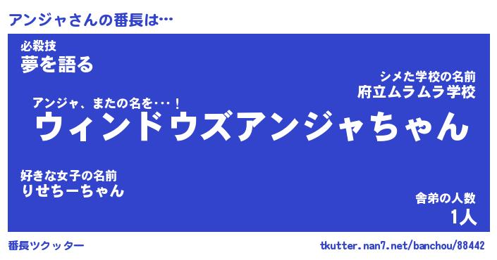 | ファンタジー風あだ名 | 『アンフェル』『エターナルアンジャー』 |