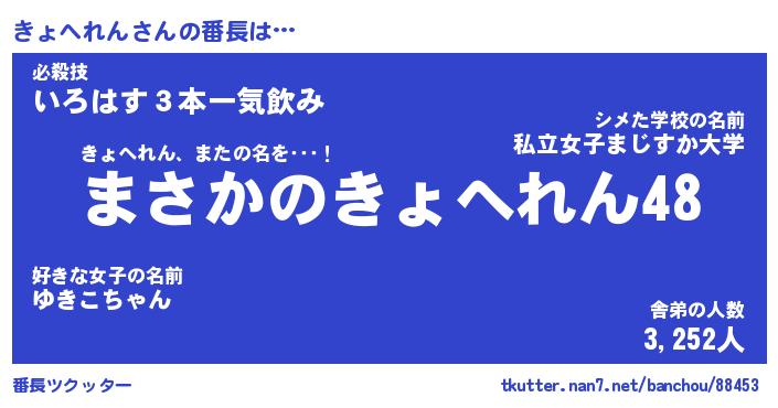 | 伝説のあだ名 | 『伝説のスナイパーきょへれん』 |