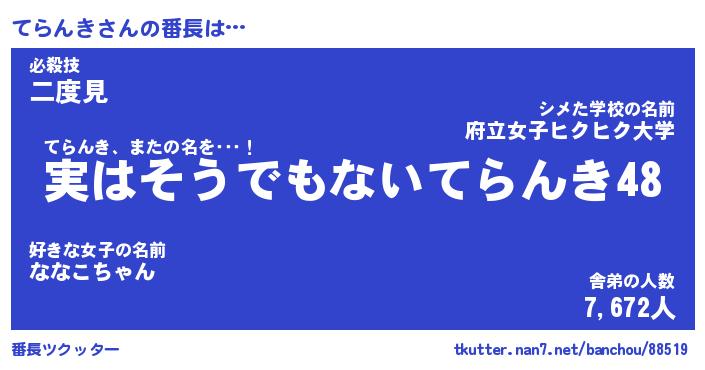 | 肩書あだ名 | 『てらんき店長』『てらんき国家主席』 |