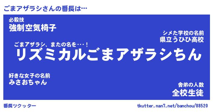 | ヒーロー風カッコイイあだ名 | 『スーパーゴマアザラシ』『暗黒騎士ゴマ』 |