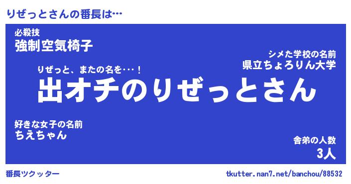 | 肩書あだ名 | 『りぜっと御曹司』『りぜっと大統領』 |