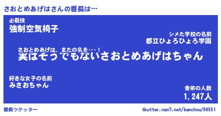 | 2回繰り返すあだ名 | 『さおさお』『ささおお』『にたにた』 |