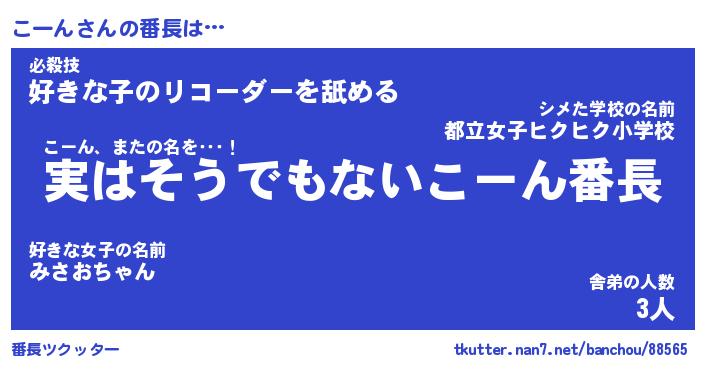 | 肩書あだ名 | 『こーん社長』『こーん総理大臣』 |