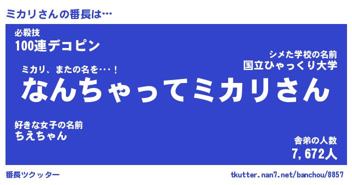 | ポケモン風あだ名 | 『ミカチュウ』『ミカリダネ』 |