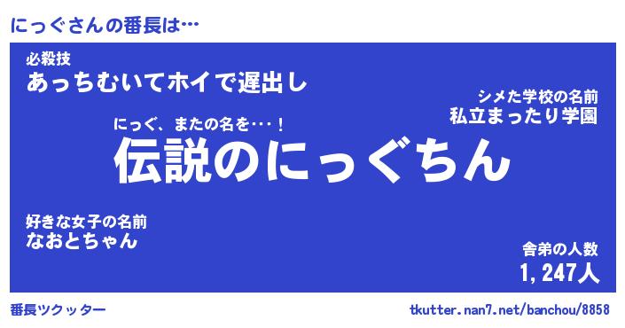 | ヒーロー風カッコイイあだ名 | 『スーパーニッグ』『ウルトラにっぐマン』 |