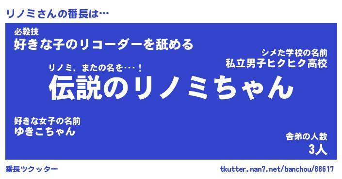 | 意味不明あだ名 | 『ペロリンリノミ』『リノミフォーエバー』 |