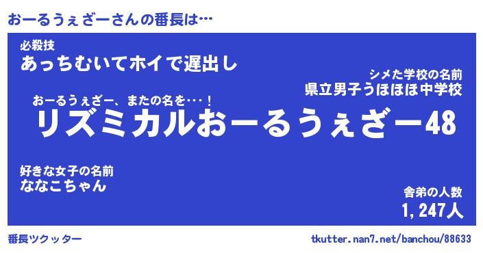 | ピコ太郎風あだ名 | 『オコ次郎』『ピオ三郎』『オー六郎』 |