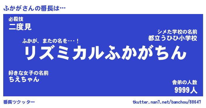 | 伝説のあだ名 | 『伝説のスナイパーふかが』 |
