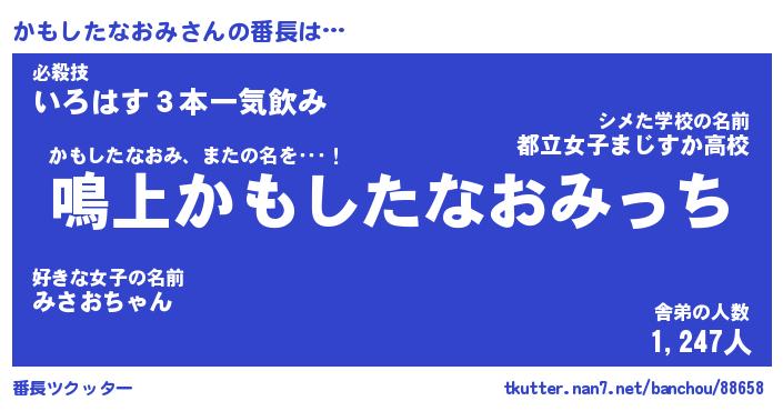 | 肩書あだ名 | 『かもしたなおみ店長』 |