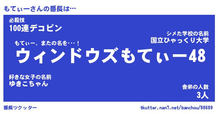 | ヘコむあだ名 | 『もてもー』『つくし』『もてお』 |