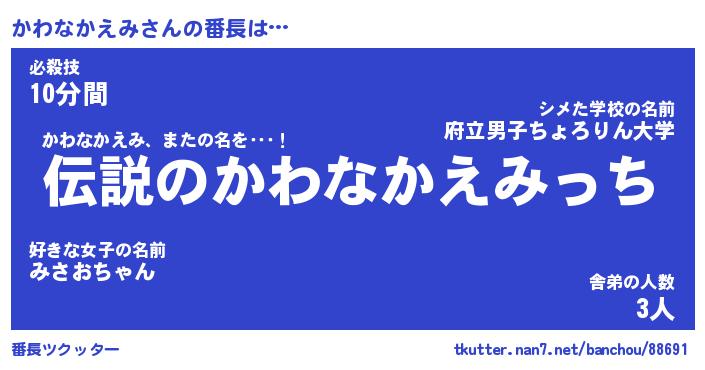 | 胡散臭い通販商品みたいなあだ名 | 『必ず成功する水晶球…その名も「かわなかえみ」』 |