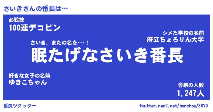 | 意味不明あだ名 | 『ペロリンさいき』『さいきフォーエバー』 |