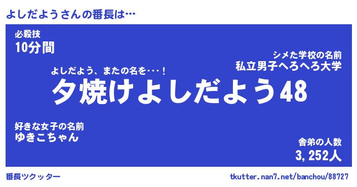 | 肩書あだ名 | 『よしだよう御曹司』『よしだよう大統領』 |