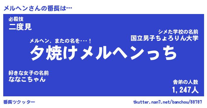 | ピコ太郎風あだ名 | 『メコ五郎』『ピメ十郎』『メル六郎』 |