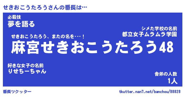 | ヒーロー風カッコイイあだ名 | 『スーパーセキオコウタロウ』 |
