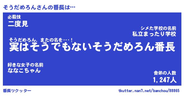 | 肩書あだ名 | 『そうだめろん店長』『そうだめろん班長』 |