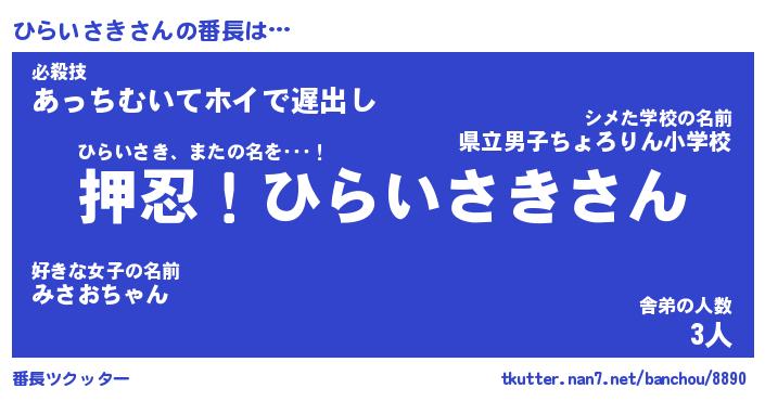 | ヒーロー風カッコイイあだ名 | 『スーパーヒライサキ』『魔戒騎士ヒラ』 |