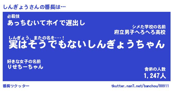 | ヒーロー風カッコイイあだ名 | 『スーパーシンギョウ』『銀牙騎士シン』 |