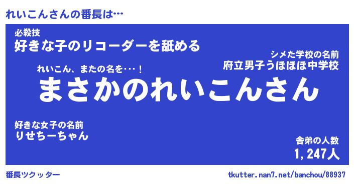 | ヘコむあだ名 | 『れいにー』『なまこ酢』『れい太郎』 |