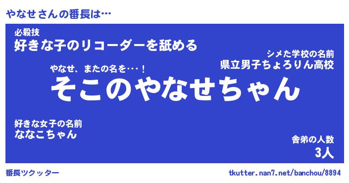 | ヘコむあだ名 | 『やなふぇ~』『なまこ酢』 |
