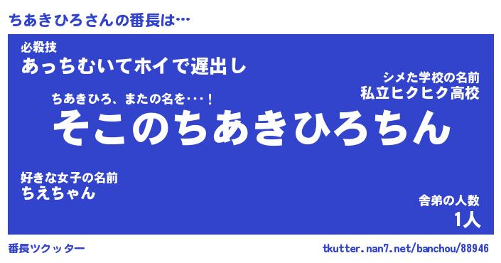 | ファンタジー風あだ名 | 『チアフェル』『エターナルチアキヒロー』 |