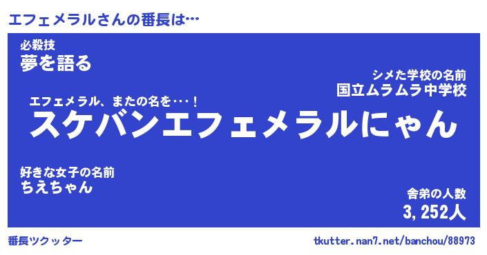 | 肩書あだ名 | 『エフェメラル社長』『エフェメラル先生』 |