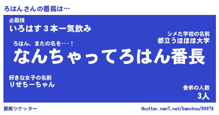 | 意味不明あだ名 | 『ペロリンろはん』『ろはんフォーエバー』 |