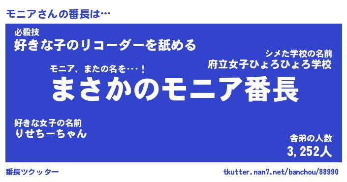 | 意味不明あだ名 | 『ペロリンモニア』『モニアフォーエバー』 |