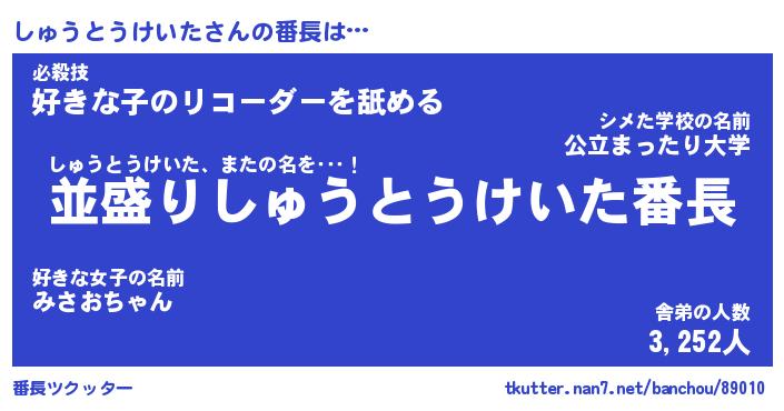 | 男性向けラノベタイトル風あだ名 | 『しゅうとうけいたの憂鬱』 |