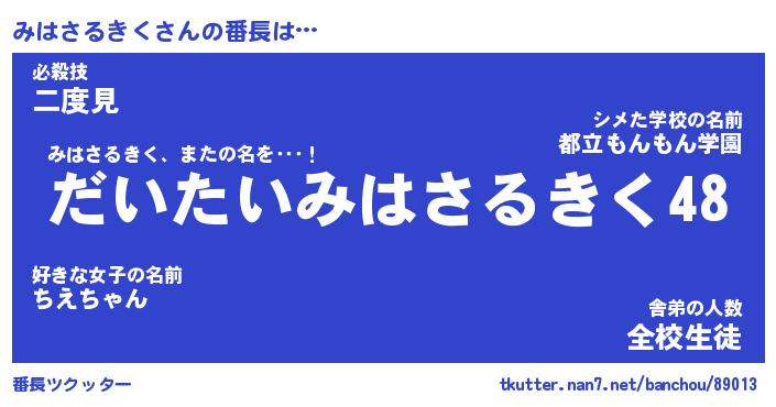 | 肩書あだ名 | 『みはさるきく社長』『みはさるきく校長』 |