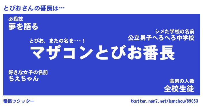 | 肩書あだ名 | 『とびお社長』『とびお国家主席』 |