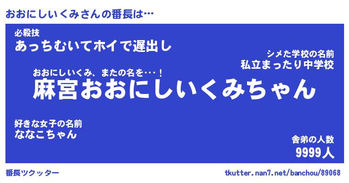 | 肩書あだ名 | 『おおにしいくみ御曹司』 |