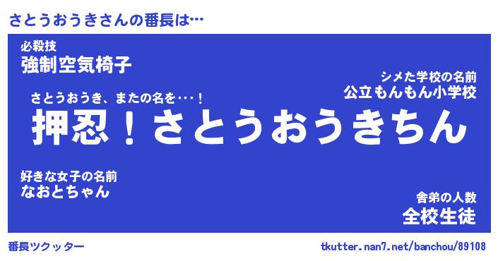 | 伝説のあだ名 | 『封印されしスナイパーさとうおうき』 |