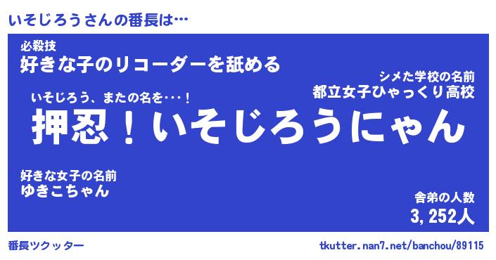 | 伝説のあだ名 | 『封印されしスナイパーいそじろう』 |
