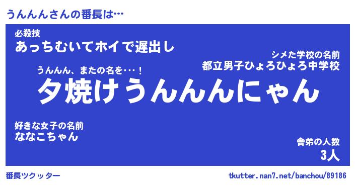 | ファンタジー風あだ名 | 『ウンフェル』『エターナルウンンンー』 |
