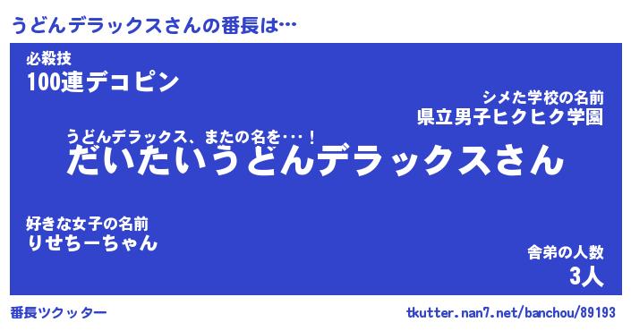 | 肩書あだ名 | 『うどんデラックス店長』 |