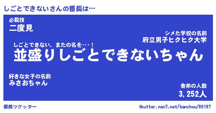 | ピコ太郎風あだ名 | 『シコ次郎』『ピシ八郎』『シゴ三郎』 |