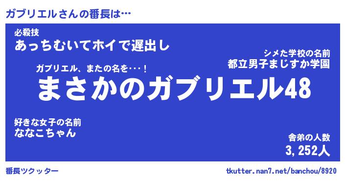 | ヒーロー風カッコイイあだ名 | 『スーパーガブリエル』『天弓騎士ガブ』 |