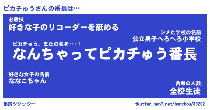 | ポケモン風あだ名 | 『ピカチュウ』『ピカチダネ』 |