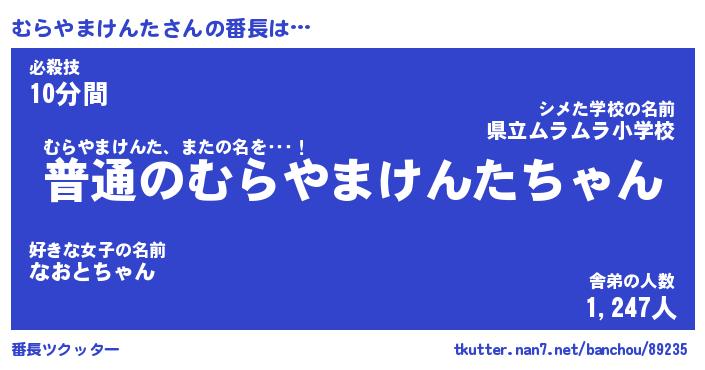 | 男性向けラノベタイトル風あだ名 | 『むらやまけんたの憂鬱』 |