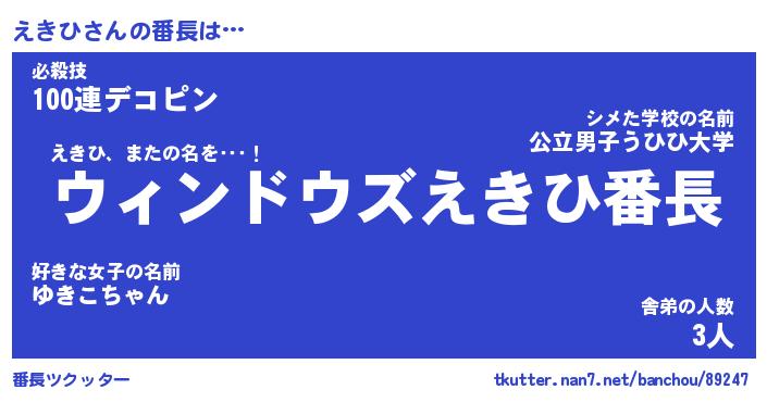 | ヘコむあだ名 | 『えきもー』『つくし』『えきっちょ』 |