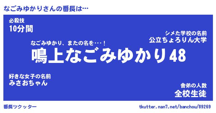 | ヒーロー風カッコイイあだ名 | 『スーパーナゴミユカリ』『魔戒騎士ナゴ』 |