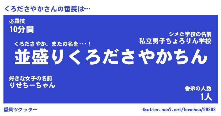 | 2回繰り返すあだ名 | 『くろくろ』『くくろろ』『いらいら』 |