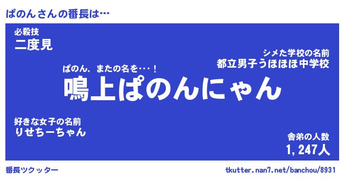 | ヘコむあだ名 | 『ぱのにー』『酢こんぶ』『ぱのっ子』 |