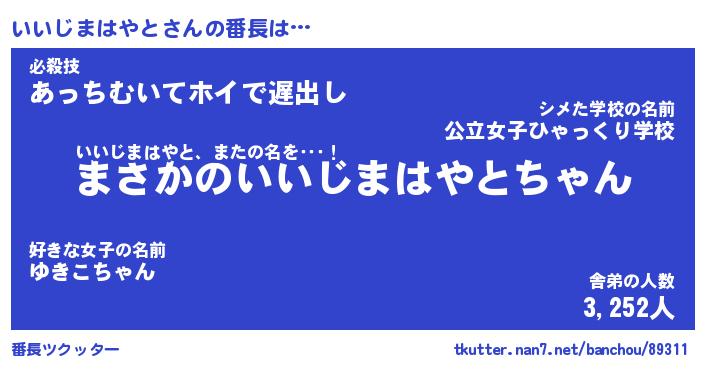 | 伝説のあだ名 | 『伝説のスナイパーいいじまはやと』 |